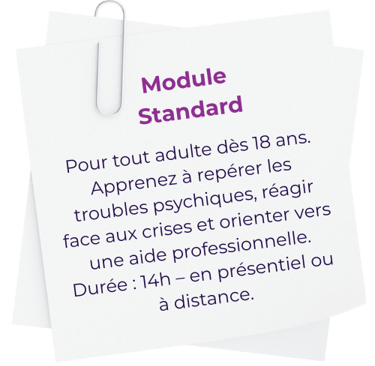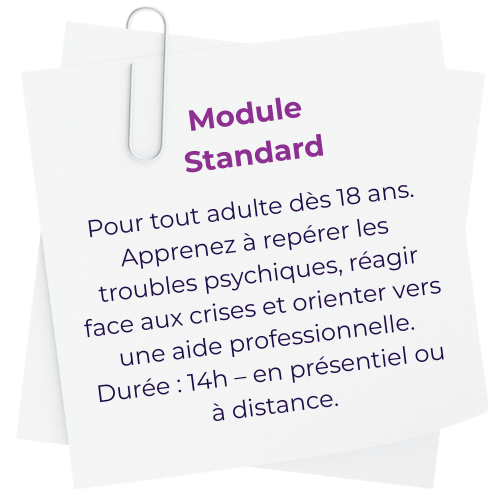 "Merci pour cette formation qui répond parfaitement aux besoins des non-spécialistes confrontés aux difficultés impliquant des personnes souffrant de troubles mentaux.