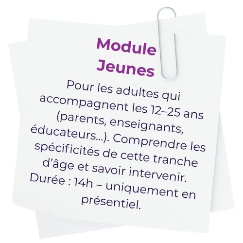 La méthode PSSM est scientifiquement validée, pratiquée dans le monde entier, et accessible à tous dès 18 ans. Elle vous donne les outils pour intervenir avec bienveillance et efficacité, sans jugement.